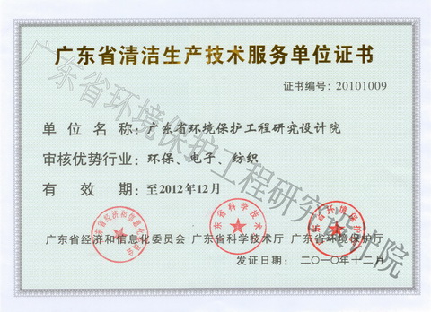 广东省清洁生产技术服务单位证书 发布时间: 2017-07-18 14:35:28 发布网站: 中国路灯招标网