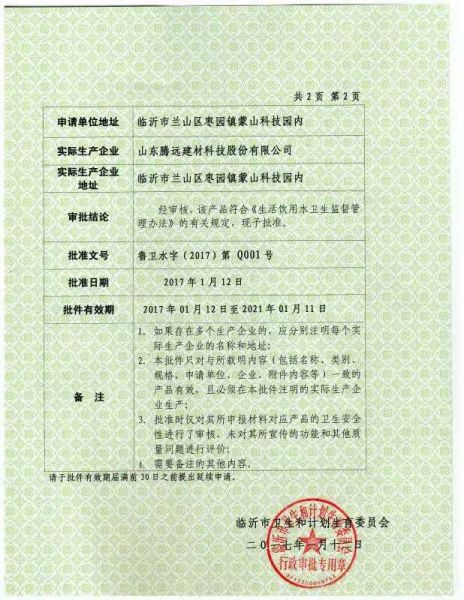 产品名称: 涉水卫生许可证 |