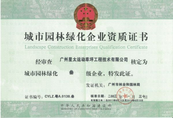 | 持证单位: 广州星太体育场地设施工程有限公司 |
